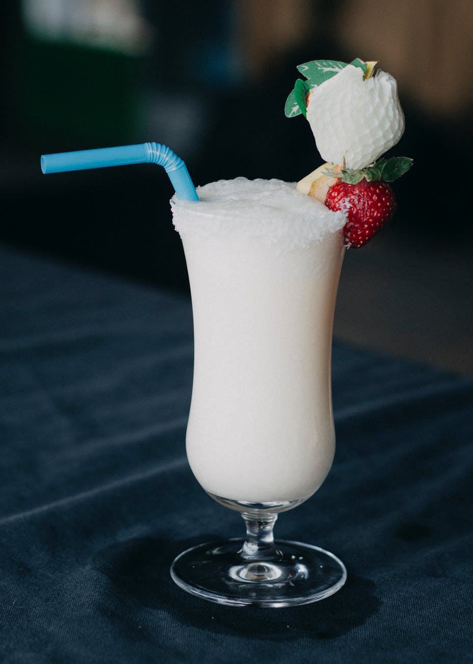- Put the ice, frozen pineapple, juice, coconut cream, and the white and dark rums into a blender. Blend until smooth and frosty.
